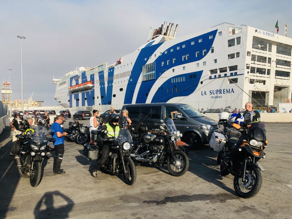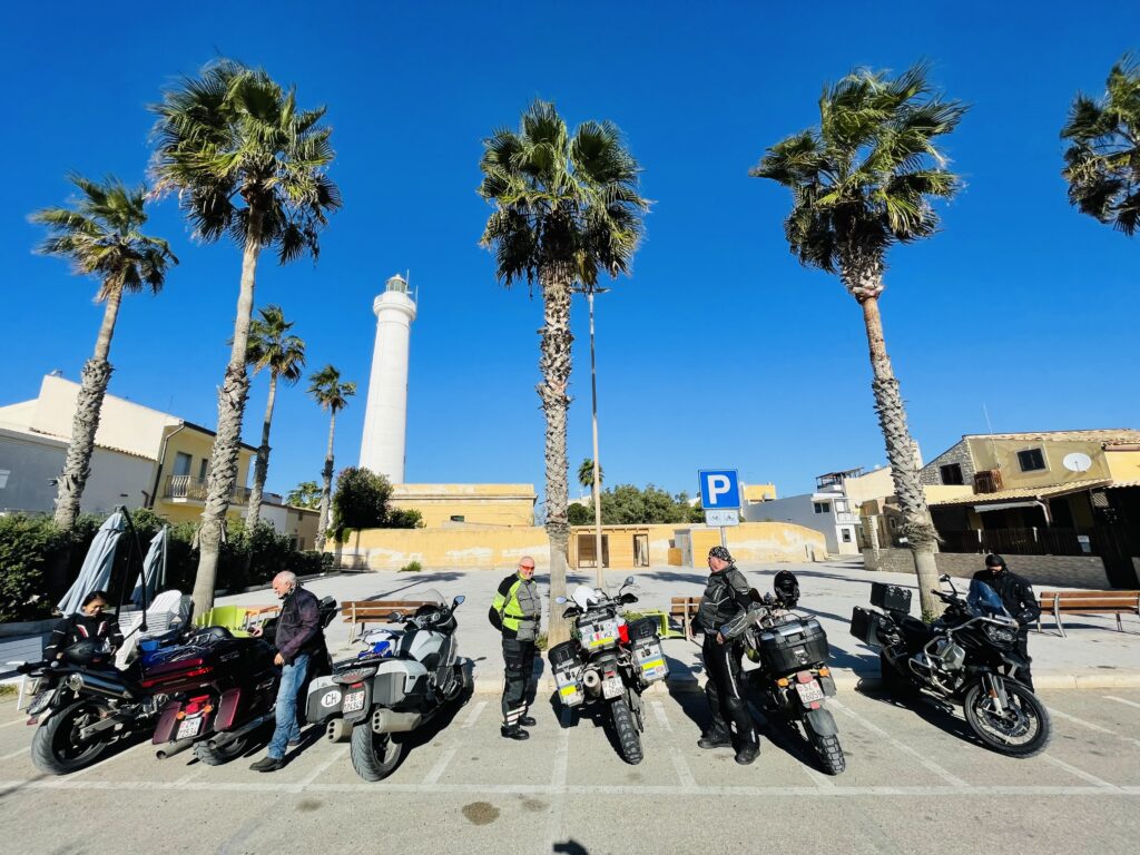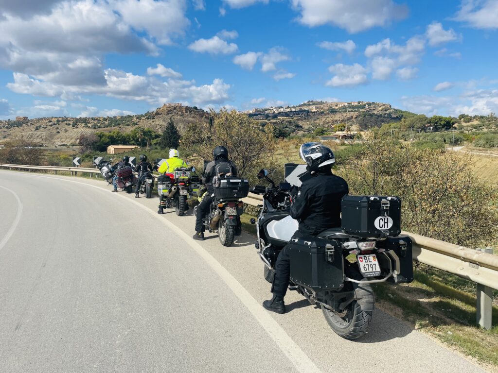 Wir sind kaum auf unsere Motorräder gestiegen, da steht schon der erste spektakuläre Halt des Tages an: Die Treppe der Türken (italienisch: Scala dei Turchi) ist eine beeindruckende weisse Felsklippe, die durch Wind und Meer über Jahrtausende zu sanft geschwungenen, stufenartigen Formen geformt wurde – daher der Name „Treppe“. Angeblich sollen hier einst türkische Piraten an Land gegangen sein. Nach diesem Fotostopp geht es über schöne und kurvenreiche Strassen in Richtung Palermo. Unterwegs halten wir an einem weiteren, bekannten Ort. Corleone ist vor allem als Herkunftsort mehrerer berüchtigter Mafiabosse bekannt. Ausserdem wurde der Name durch die fiktive Mafiafamilie „Corleone“ in den Der Pate-Filmen weltberühmt. Dort müssen wir natürlich einen Espresso mafiato (sic!) trinken! Bevor wir dann in Palermo auf die Nachtfähre gehen, geniessen wir noch den Blick auf die Hauptstadt Siziliens von einem wunderbaren Aussichtspunkt. Der perfekte Ort, um uns von der eindrucksvollen und geschichtsträchtigen Insel Sizilien zu verabschieden.