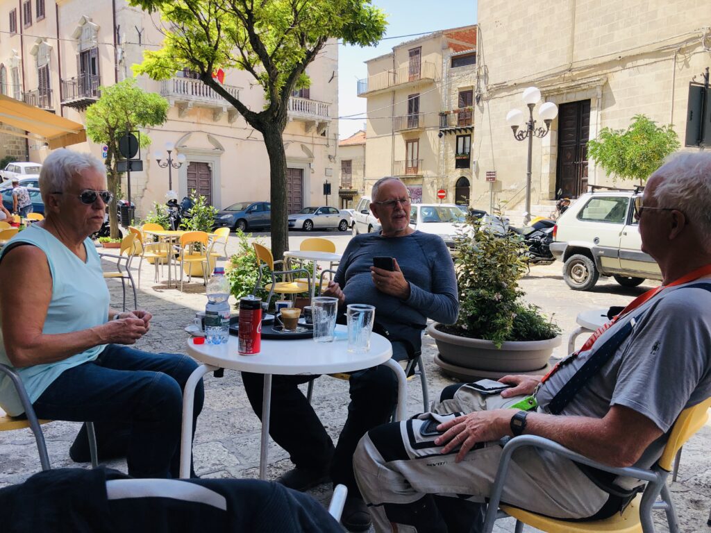Ein letztes Mal mäandern wir um den Ätna. Dann biegen wir über kleinste, kleine und mittelkleine Strassen nach Süden ab. Fahrspass pur! Unser Tagesziel liegt in der Nähe der Stadt Ragusa. Mit dem gleichnamigen Schokoriegel hat sich nicht viel gemein. Aber sie ist eine der spätbarocken Städte des Val di Noto auf Sizilien und wurde 2002 zum UNESCO-Welterbe erklärt. Hier stoppen wir für einen Kaffee und geniessen die barocke Architektur.